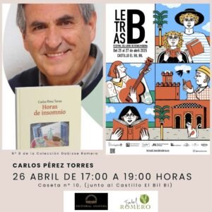 Nos complace anunciar un evento muy especial para los amantes de la literatura. El próximo 26 de abril de 2025, Carlos Pérez Torres, autor del libro «Horas de insomnio», estará presente en el Festival de los Libros de Benalmádena (LETRAS B) para un encuentro con sus lectores y una sesión de firmas. Esta será una oportunidad única para conocer más sobre su obra y conversar directamente con el autor sobre su último libro, que pertenece a la Colección Dabisse-Romero de la Editorial Anáfora.